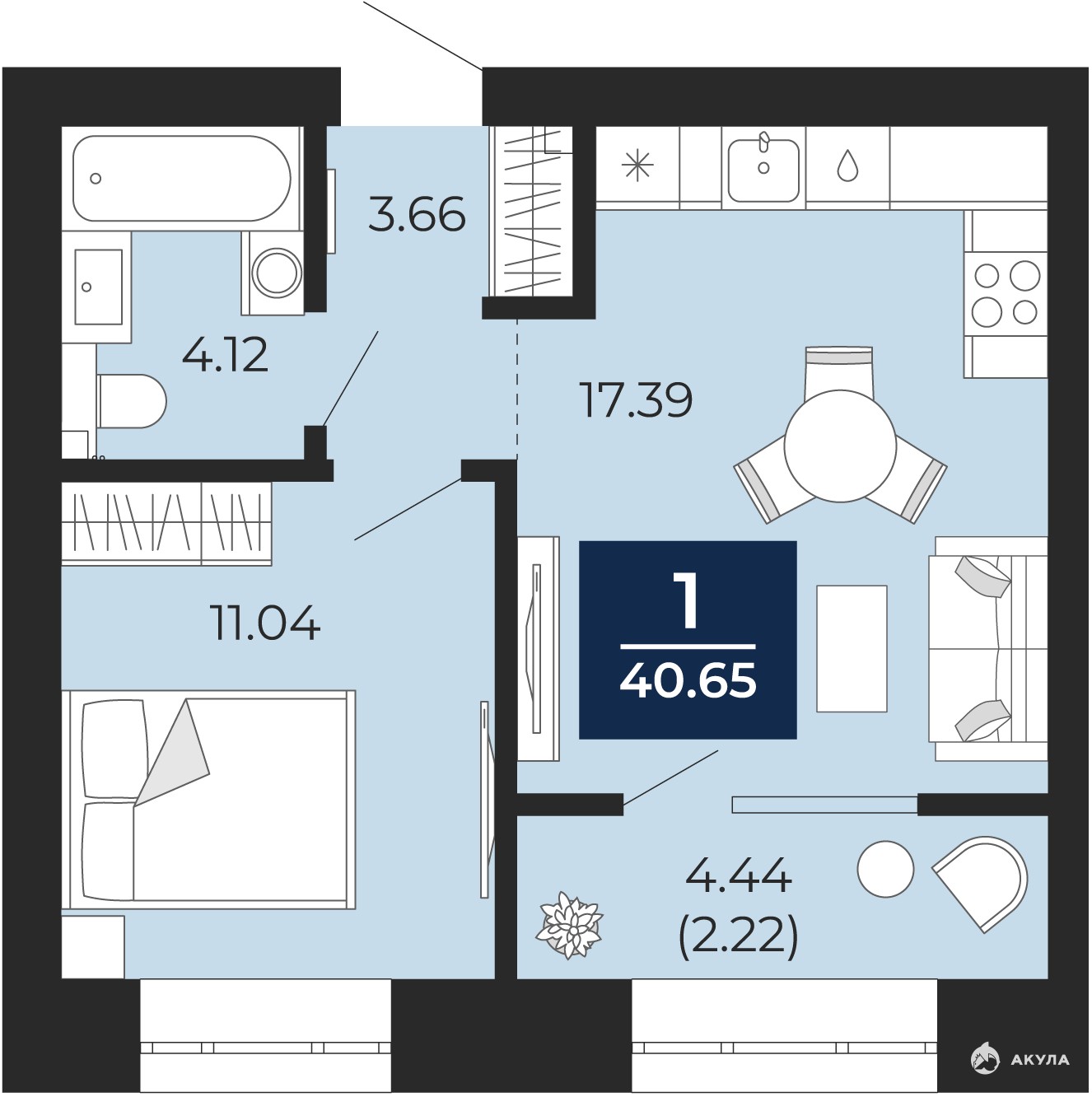 - 17.39 м²