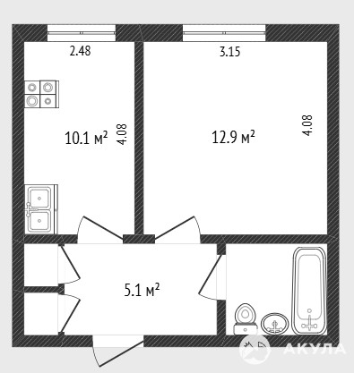 - 12.9 м²