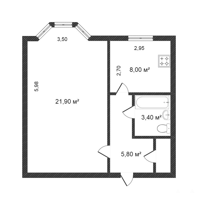 - 21.9 м²
