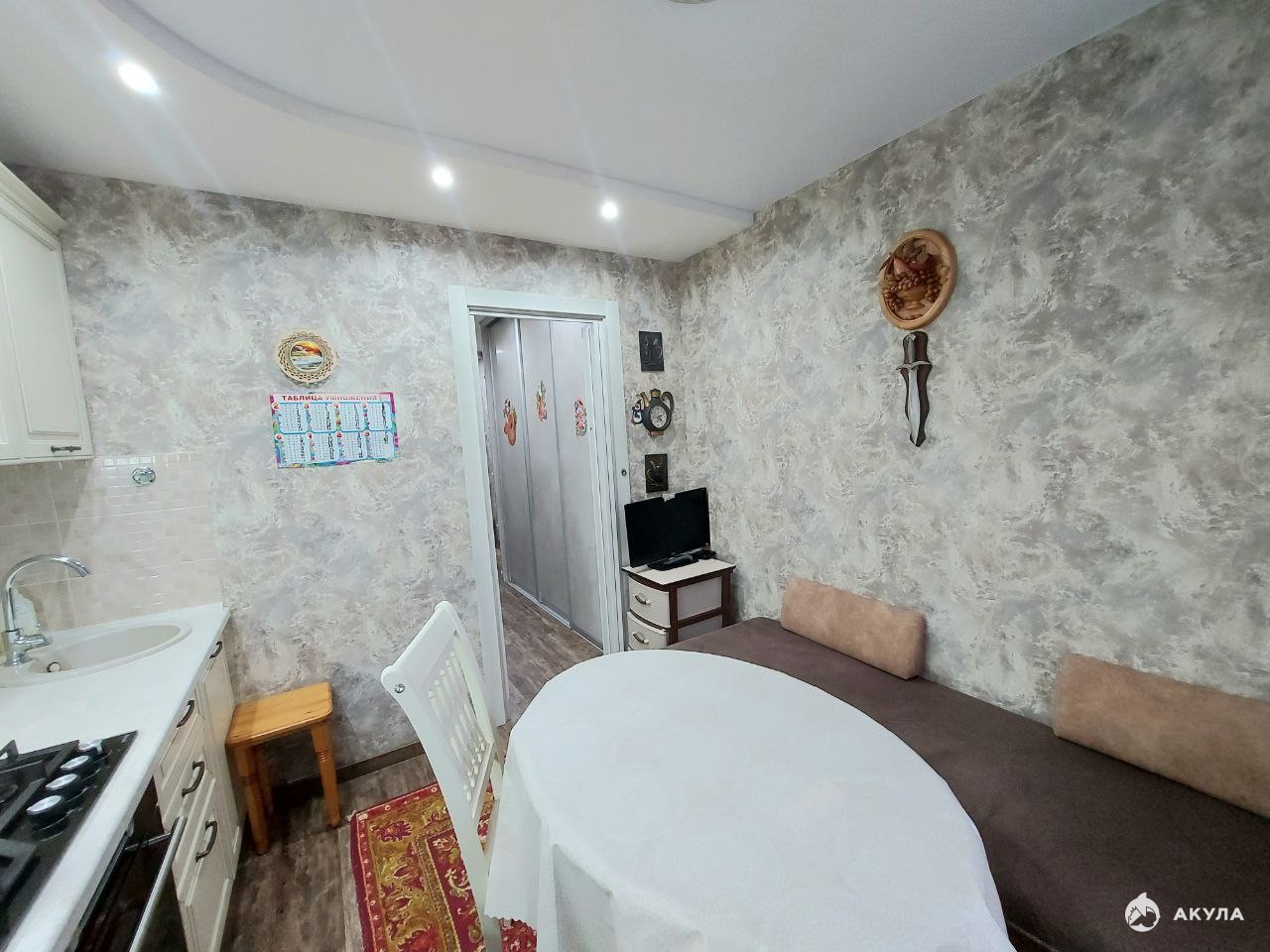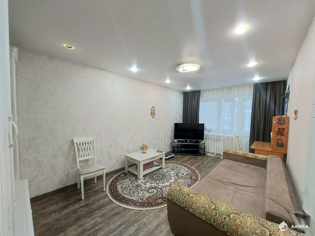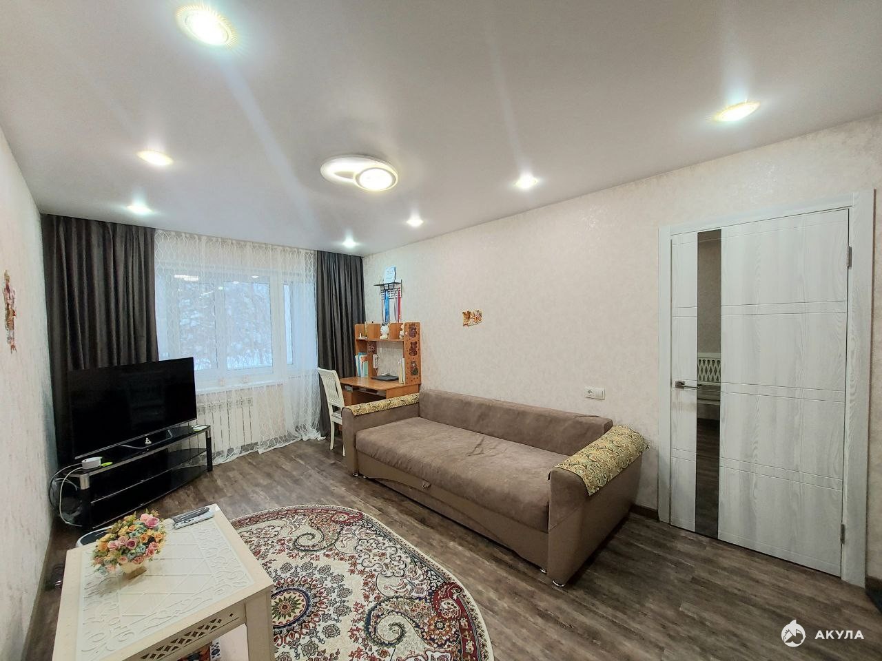 В квартире выполнен качественный капитальный ремонт: установлены пластиковые окна, натяжные потолки, проводка заменена, пол выровнен, теплый пол на кухне и на балконе, балкон обшит.