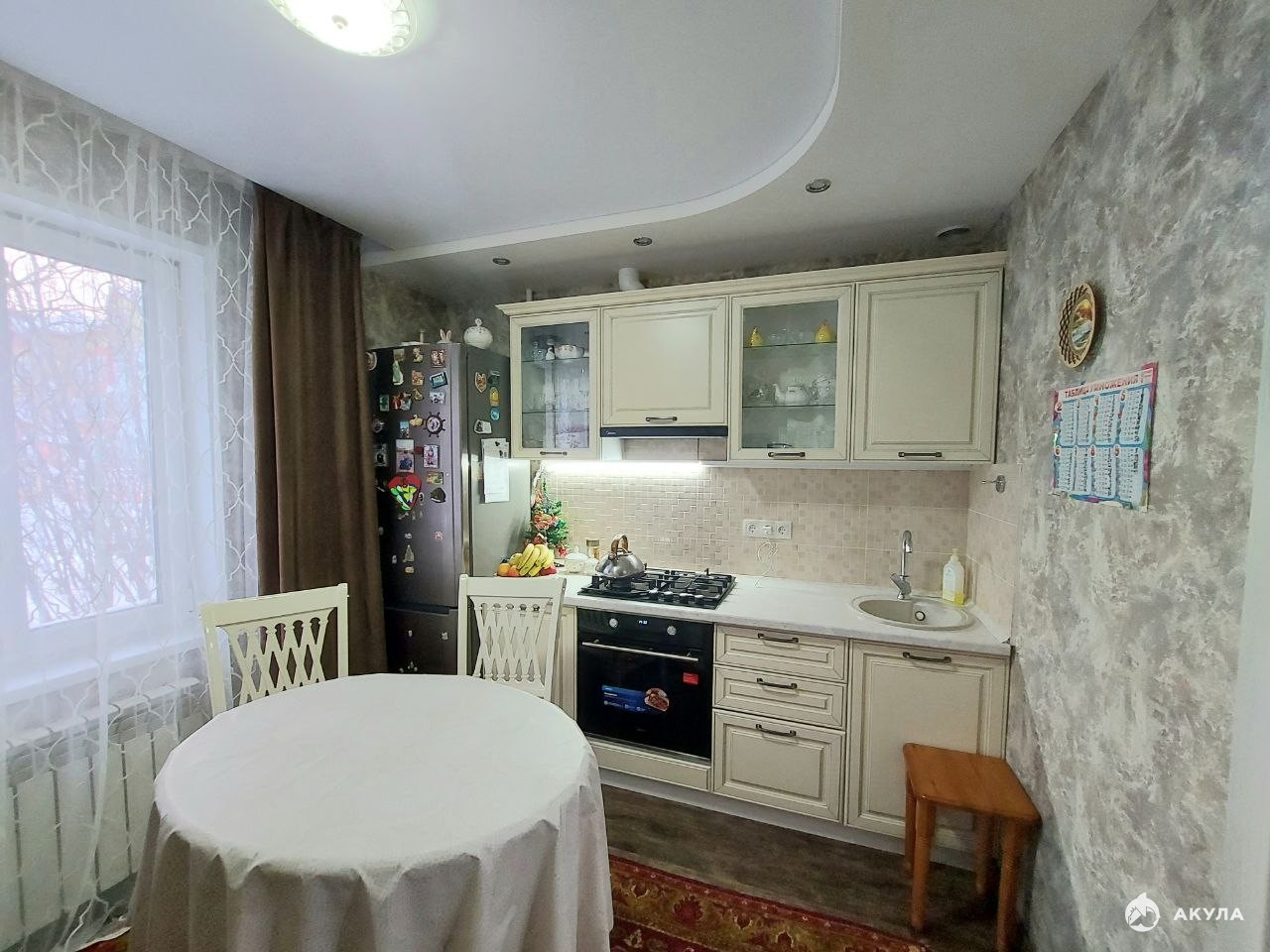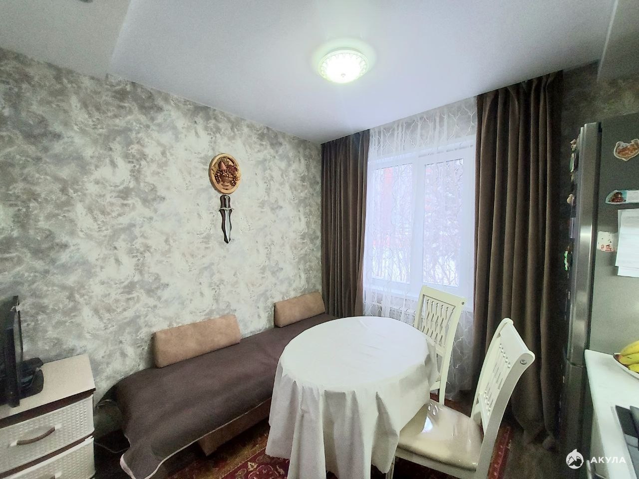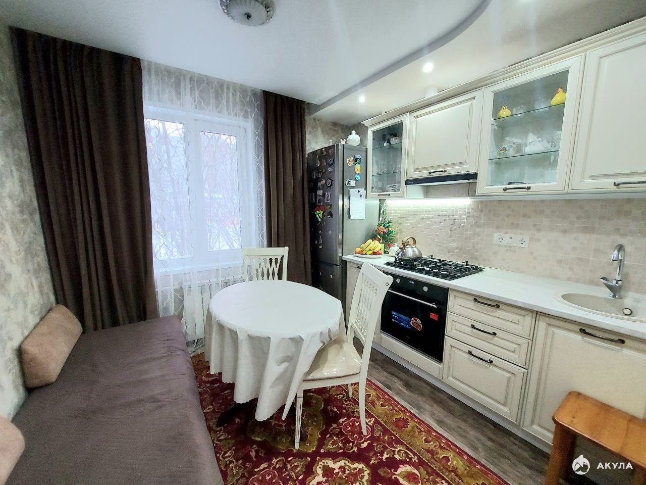 В квартире выполнен качественный капитальный ремонт: установлены пластиковые окна, натяжные потолки, проводка заменена, пол выровнен, теплый пол на кухне и на балконе, балкон обшит.