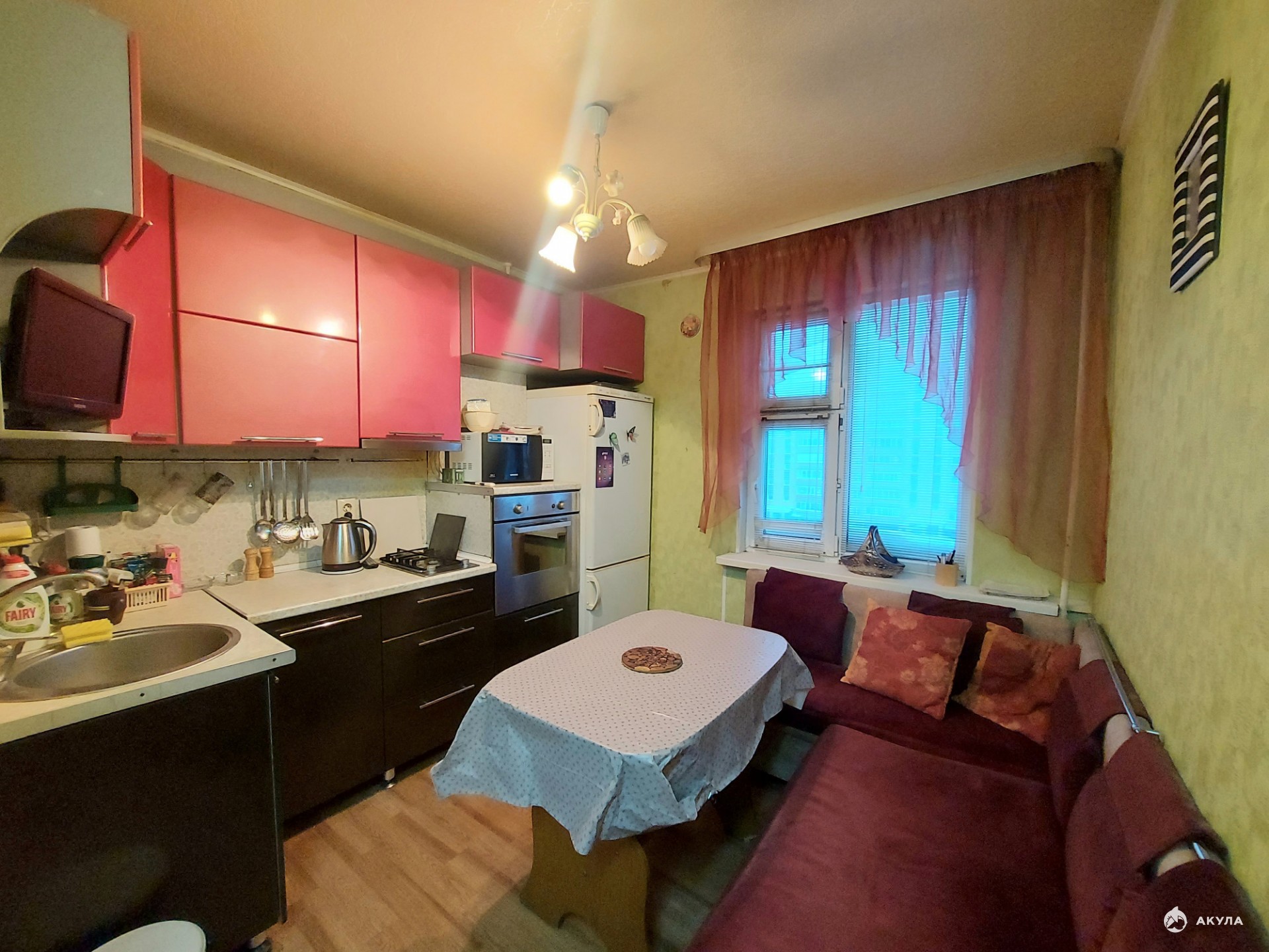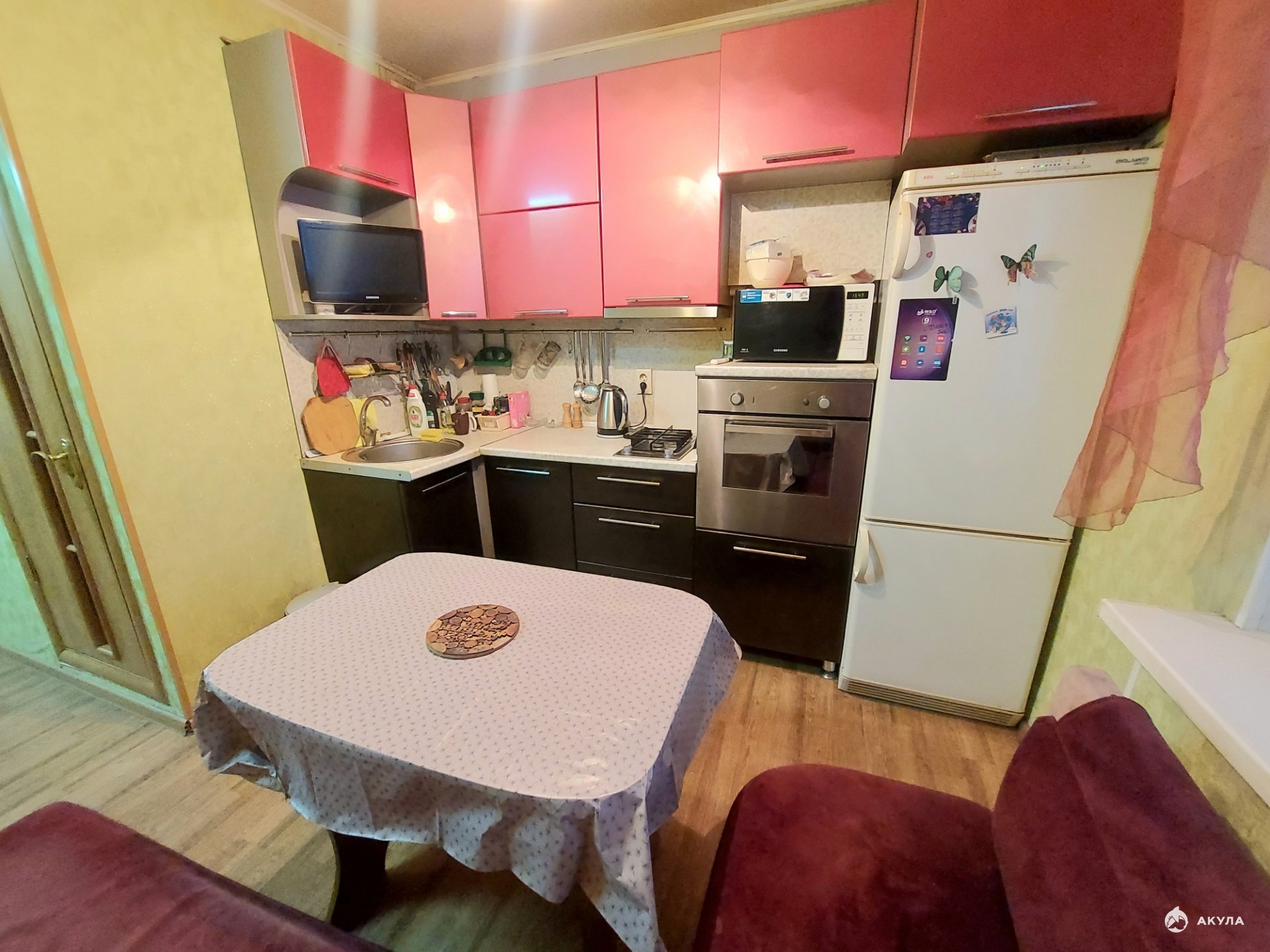 При продаже остаётся вся мебель и техника , диван, вместительные шкафы, кухонный гарнитур, стиральная машинка, холодильник.