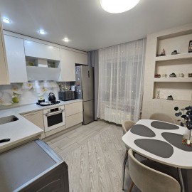 В продаже просторная квартира с евроремонтом в удобном для проживания районе мкр. Юбилейный. Выделяет данное предложение от остальных: Качественно выполненный ремонт, современная и новая бытовая техника и мебель, просторные гардеробные для хранения вещей...